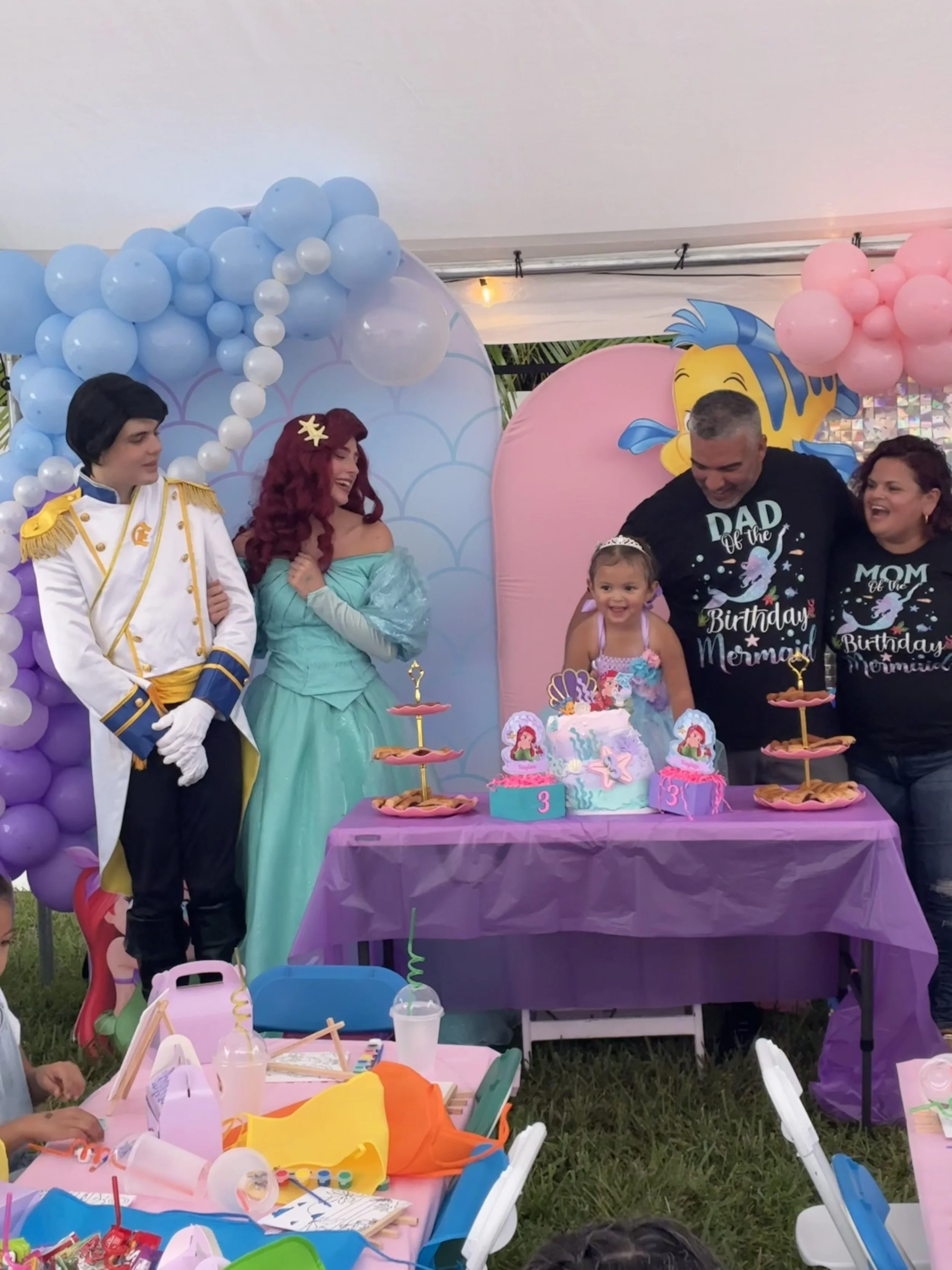 This ocean loving mermaid and her charming prince make the perfect duo for magical fun on land! Curious, kind, and full of heart, the mermaid brings wonder and joy wherever she goes, while the prince’s friendly and adventurous spirit makes everyone feel like royalty. Whether they’re singing, reading stories, or leading games, they bring laughter, warmth, and a splash of sea sparkle to every event. Their playful energy and genuine charm make them a favorite for kids of all ages!